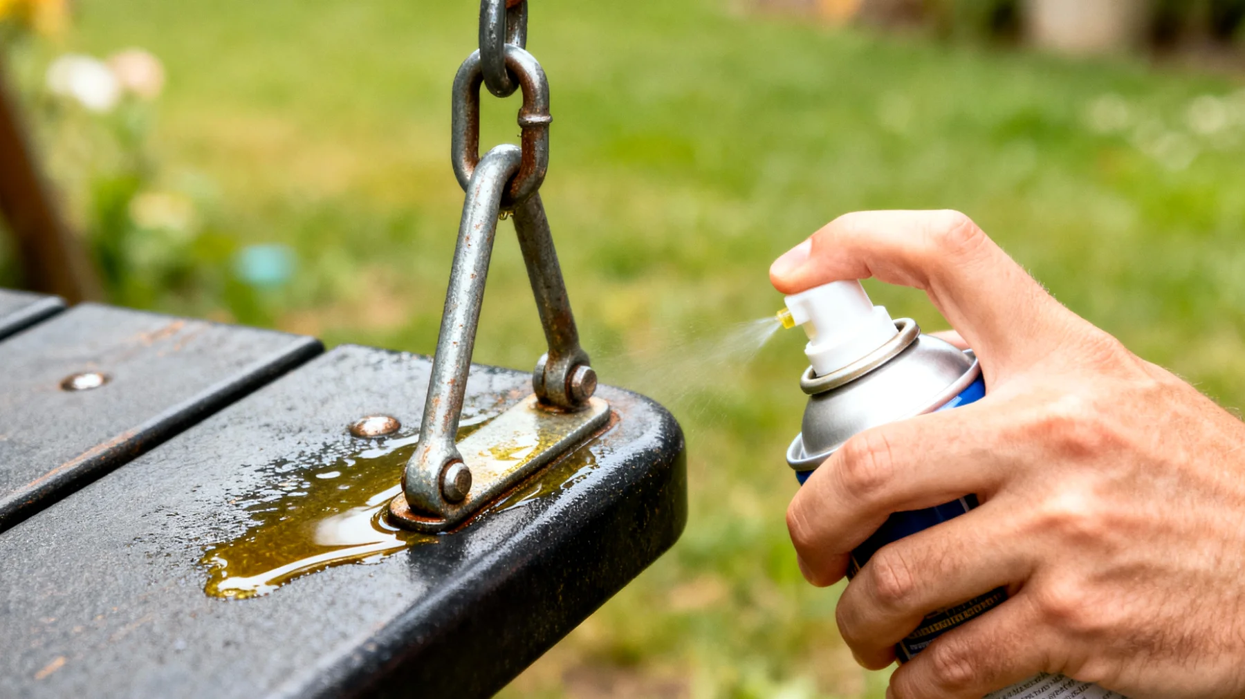 È fondamentale concentrarsi sui punti critici: le catene e gli snodi principali dell’oscillazione, le viti passanti e i bulloni su cui ruotano le parti mobili, le giunzioni metalliche dove i tubolari si incastrano. Dopo l’applicazione del prodotto, muovi lentamente il dondolo per distribuire uniformemente il lubrificante su tutta la superficie di contatto. Se l’olio inizia a colare eccessivamente, significa che ne è stato usato troppo: l’eccesso non migliora l’efficacia, anzi può attirare polvere e sporco.